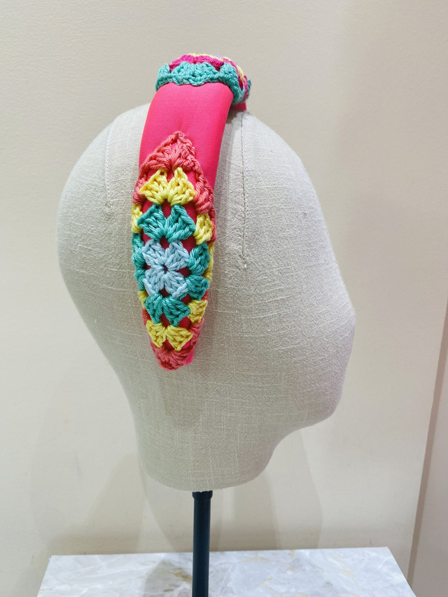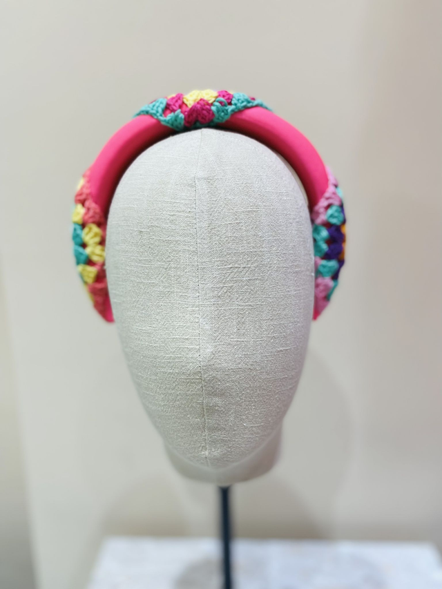 Frontino bombato fucsia, 3 mattonelle con contrasti di colore.
