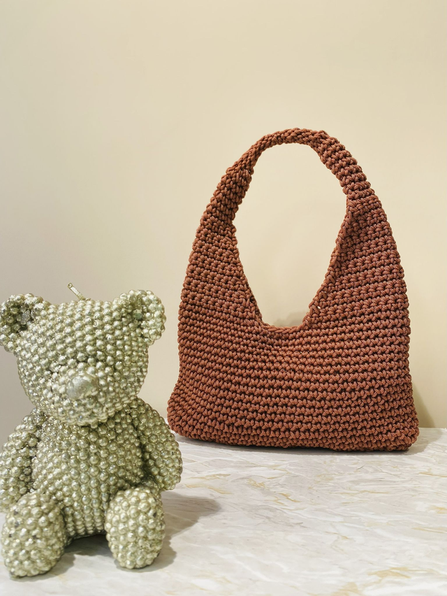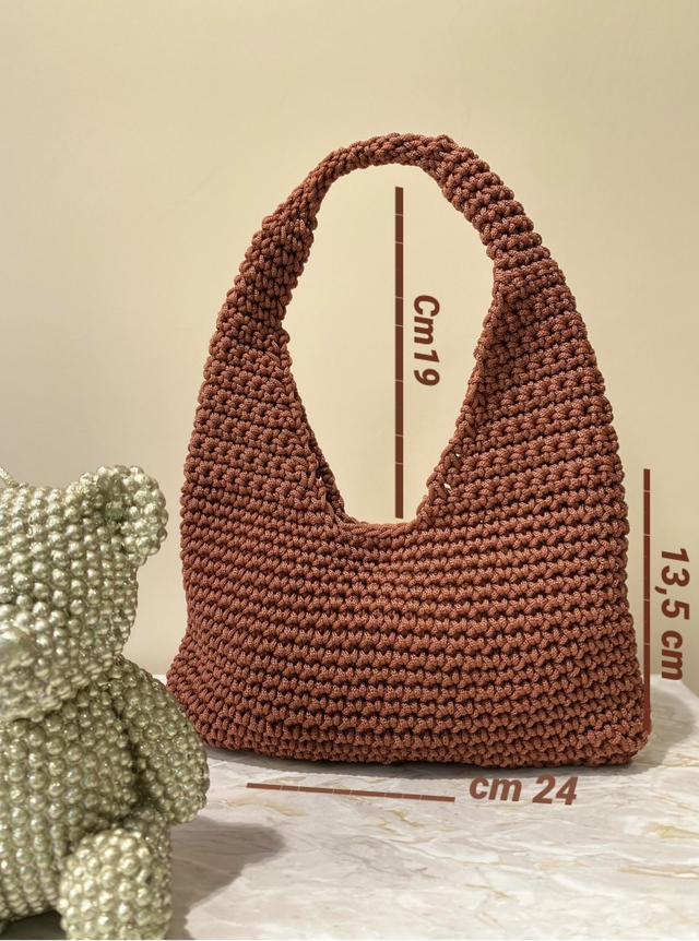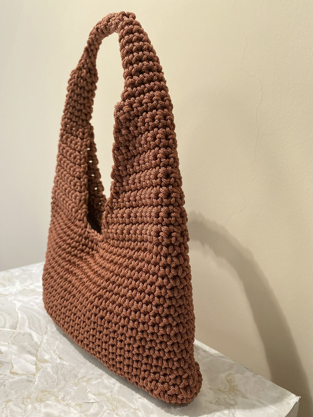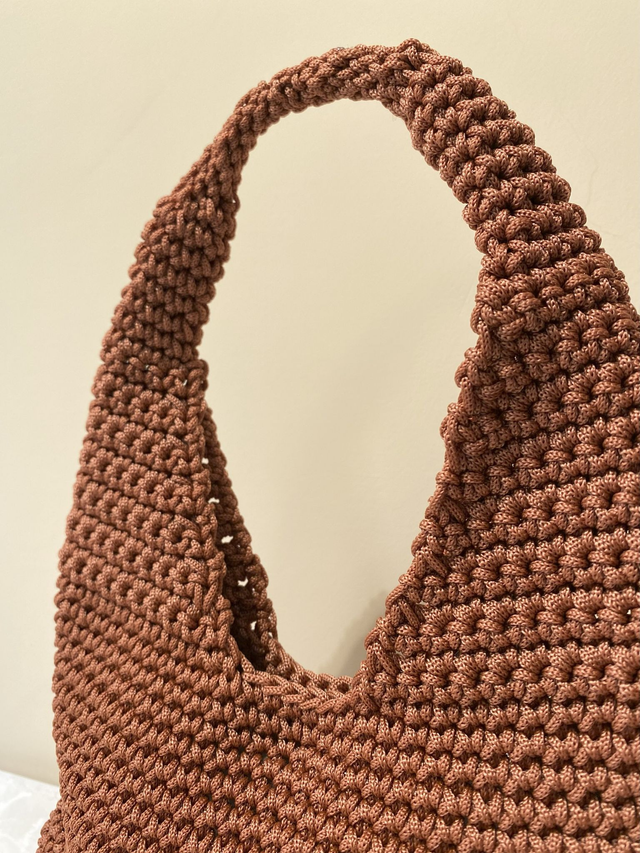Mini borsa Livia realizzata completamente all'uncinetto modello mezza luna con manico ritorto.