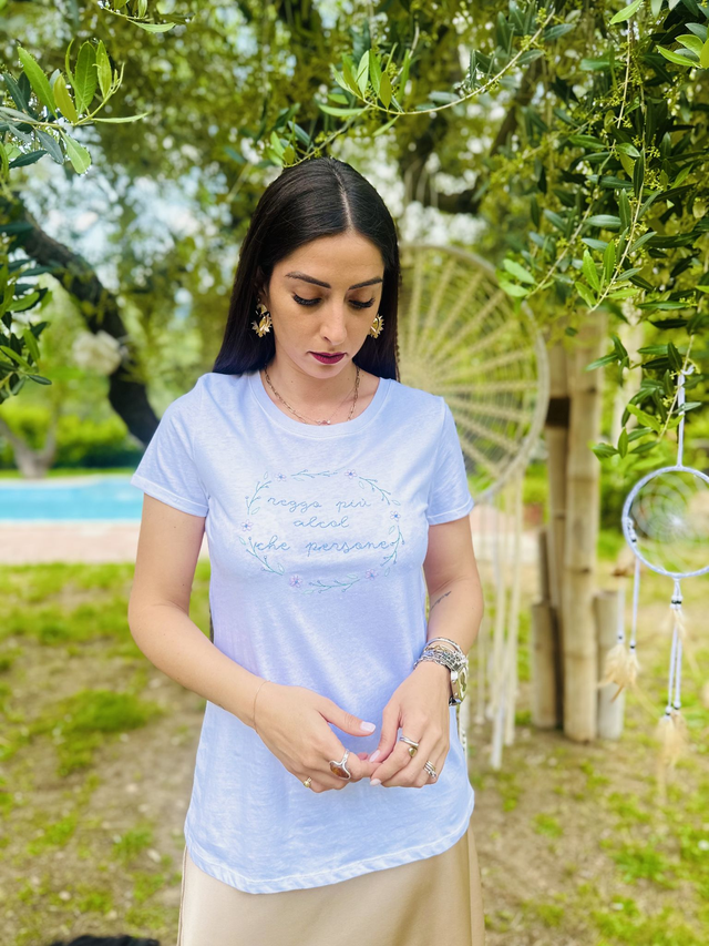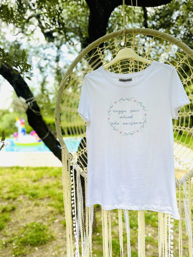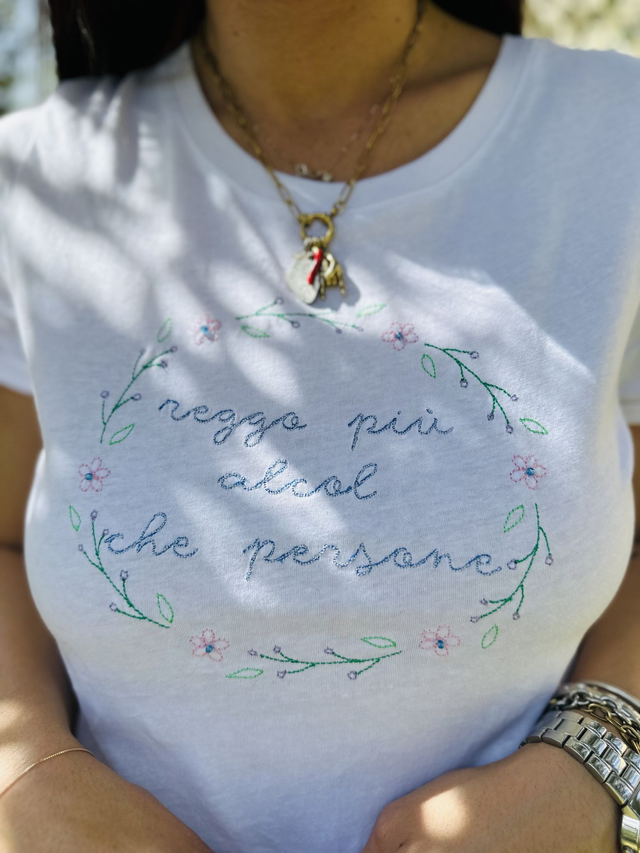 T-shirt con ricamo “REGGO PIÙ ALCOL CHE PERSONE”