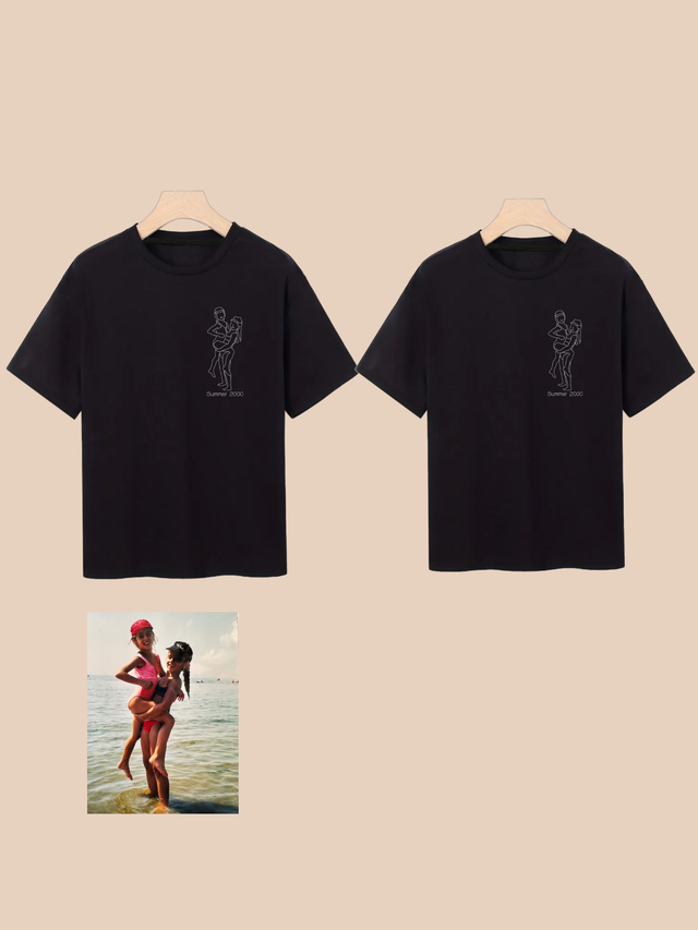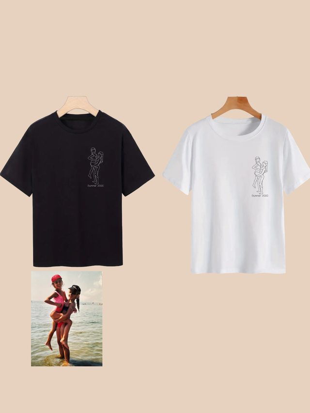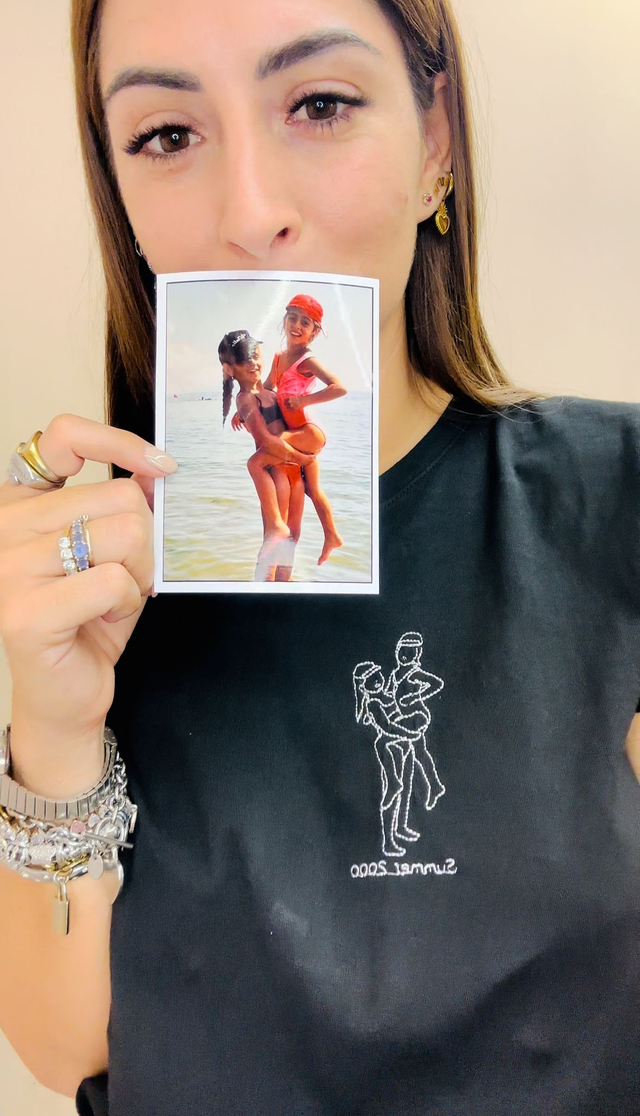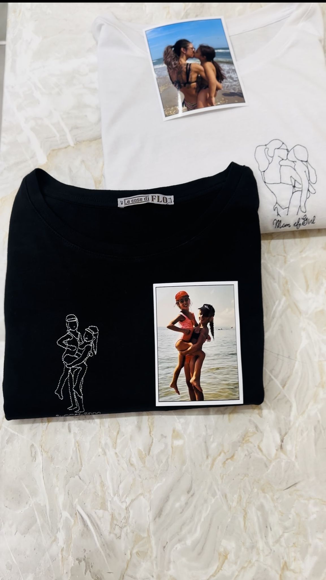 Mandaci la tua foto del cuore e noi te la ricamiamo, acquista la t-shirt di coppia per te e per la persona che vuoi stupire, la seconda la paghi €20!
